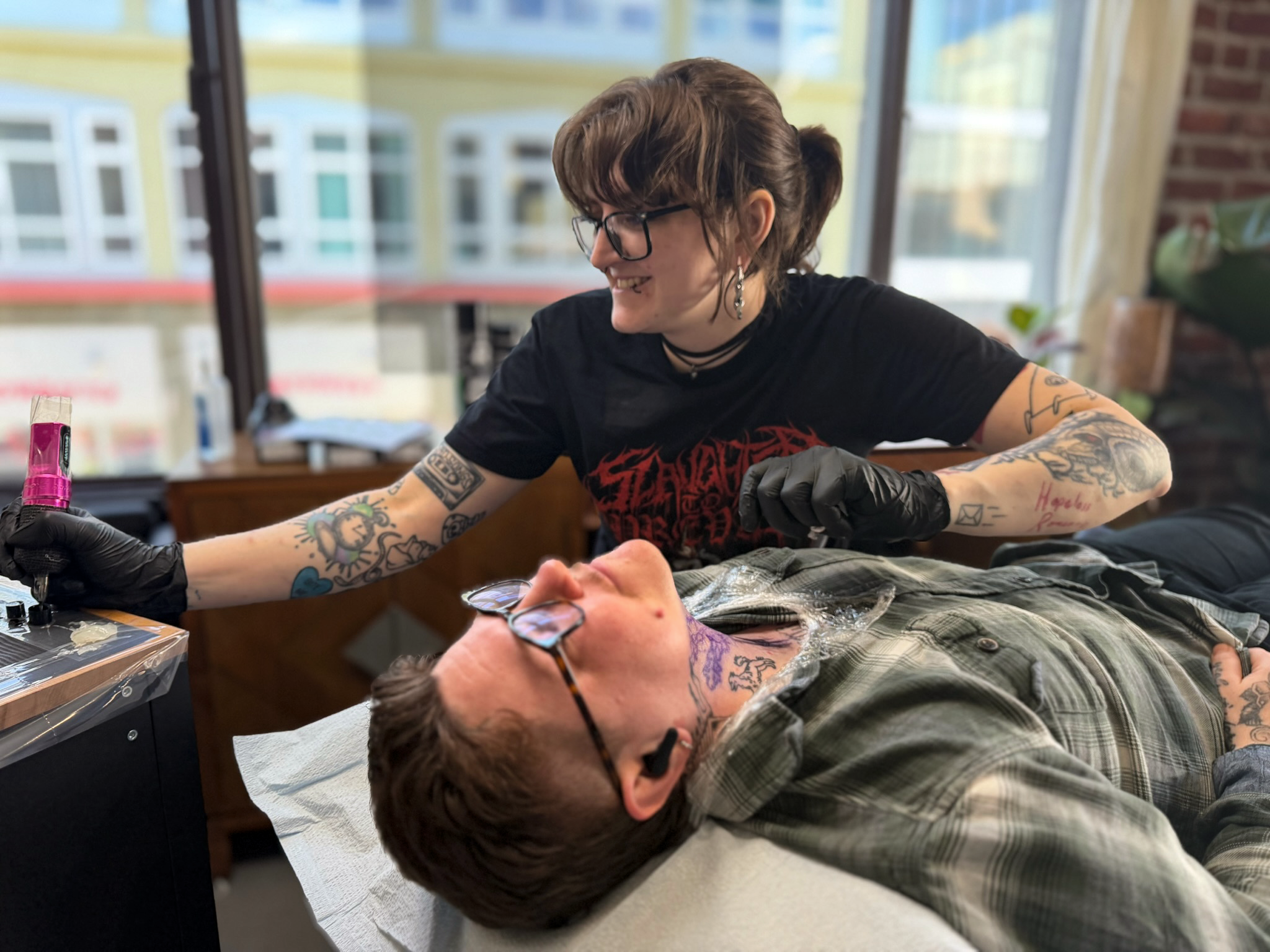 Since touching needle to skin in the summer of 2025 my main focus has been creating an approachable, healing, and kickass space for all who are interested in body art. Tattooing personally helped me kick a decade long habit of self-harm and start appreciating my meat-suit. I hope to help others find the healing and growth we can experience through the process of tattooing.